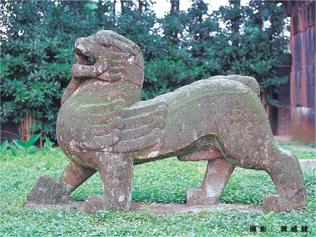 �����ں�������Ķ�����ʷ����Ĺǰ��������һ��ĥ������ص�ʯ�ޣ�����˫���һֻ�Ͽ���»����һֻ�̱�а����������͡�����·��ۼ͡��ļ������Ǻϵģ��Ժ����Ǿͽ�����ʯ��Ϊ��»���а��ʯ���а�����165���ף�����о��룬�������������ڱ�����ǰ�����ſ���˫ĿԲ�������ϵ����������������������������˴����Բ���գ������ļ���ǽڱ��ֵ�ʮ��������ʵ���ְ�ϸ��ϸ�ӱ��֣�����ΰ���־��ţ����������ȥ��Ĺʯ�����Ǹ�Ϊ�����ˡ�